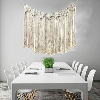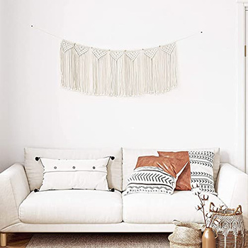 Pancarta de macramé para colgar fácilmente para decoración moderna del hogar, tapiz de ambiente bohemio, decoración de pared montada en cuerda
